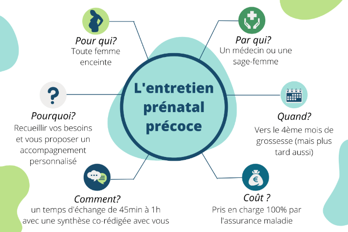 Cet entretien est proposé à tous les futurs parents ou toutes les femmes enceintes à partir du 4ème mois, afin de préparer avec eux les meilleures conditions possibles de la venue au monde de leur enfant.